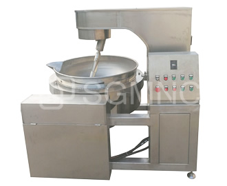 行星炒锅采用半球形不锈钢锅体一次冲压而成,可以采用、燃气、蒸汽、电加热等加热形式,搅拌方式采用特殊的倾斜式搅拌,可以使得行星搅拌器和锅底充分接触,可以360度刮底搅拌,具有变频功率,可以让机器运行更平稳,更省电。特殊设计结构,倒料不需要拆装搅拌器,翻锅倒料,节省人力,是非常实用的食品加工设备。